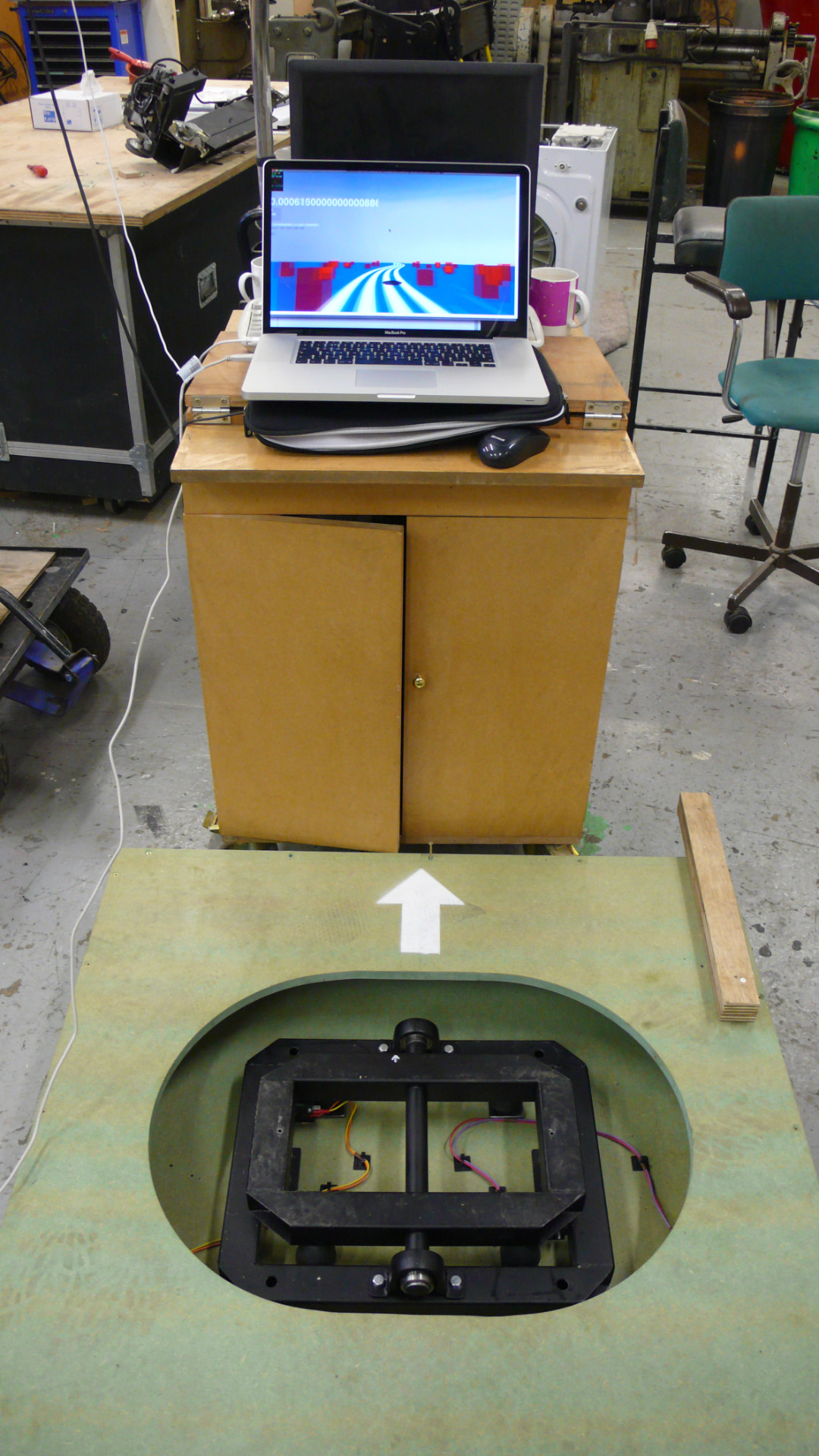 Testing the prototype game controller at Machine Shop.